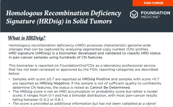 HRD signature (HRDsig) is a scar-based, pan-solid tumor biomarker that identifies a population that may be sensitive to PARP inhibitors. Check out the resources below to learn more.